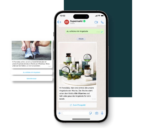WhatsApp ist der direkte Draht zu deinen Kunden. Wieso? Weil sich die Nutzung der Chatplattform für uns intuitiv anfühlt und deine Marketingbotschaft sozusagen direkt in der Hosentasche der Kunden landet.