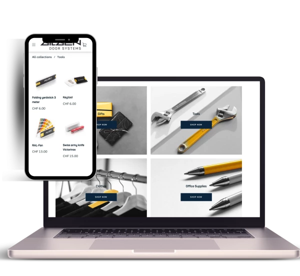 Damit die unterschiedlichen Mitarbeiten aus den diversen Abteilungen (z.B. Aussendienst) direkt mit Merch-Artikel ausstatten können, war die Idee, einen firmeninternen Online-Shop zu erstellen. Für die Umsetzung dieses Projekts wurden wir beauftragt.
